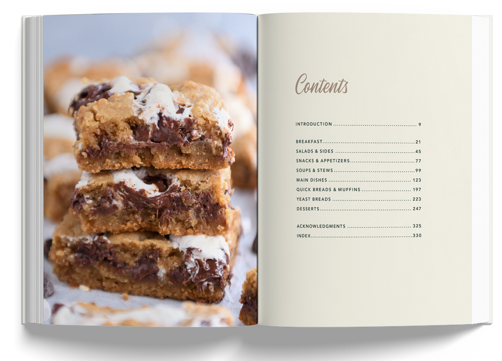 Includes: color photographs for EVERY recipe, categories including breakfast, appetizers/snacks, side and salads, main dish, soups, quick breads, yeast breads, and desserts.
